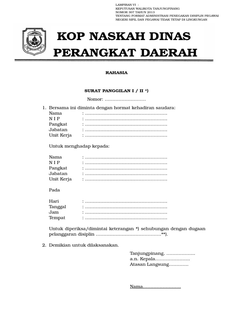 Contoh Surat Panggilan Pns Mangkir Kerja