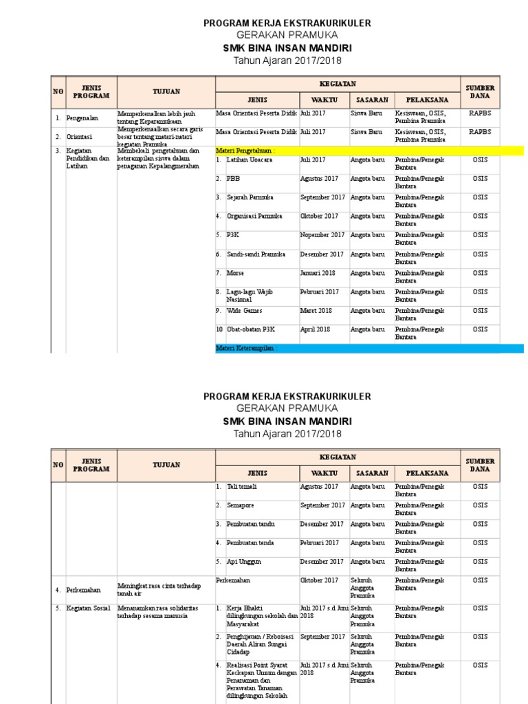 Program Kerja Dan Jadwal Pramuka