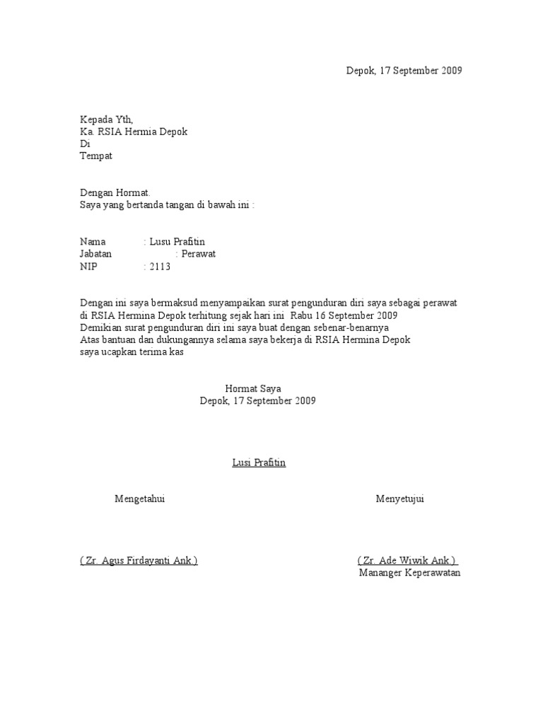 Contoh Surat Pengunduran Diri Dari Rumah Sakit Contoh Seputar Surat