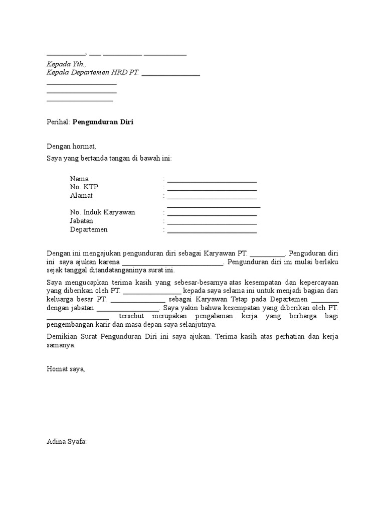 Contoh Surat Pengunduran Diri Karyawan Doc