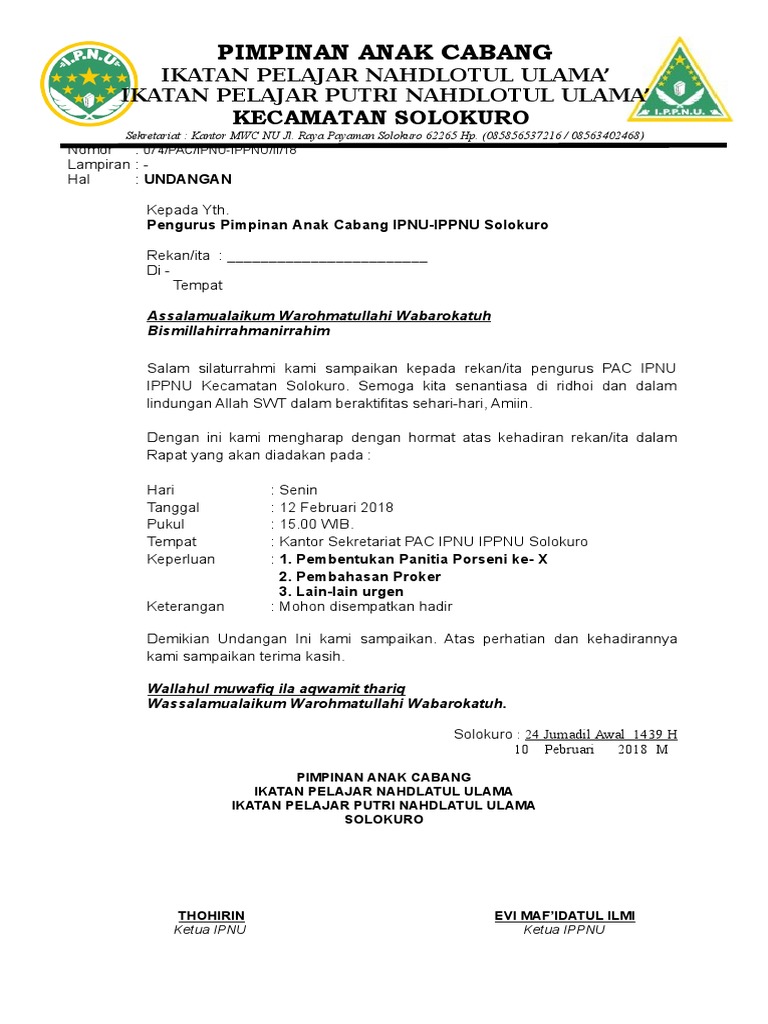 Contoh Surat Undangan Ipnu Ippnu Sample Surat Undangan