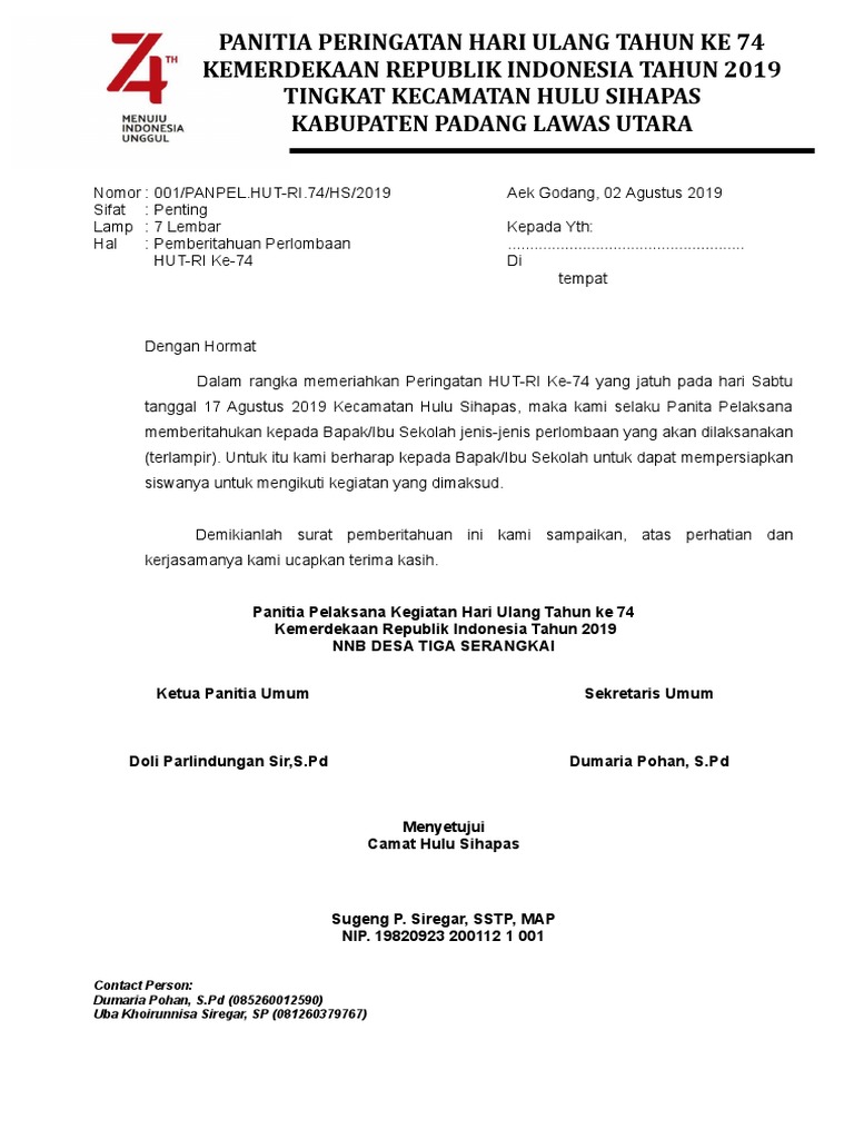 Undangan Peringatan Hut Ke 74 Kemerdekaan Ri Tahun 2019
