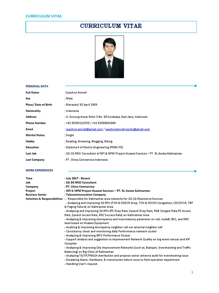 Contoh Curriculum Vitae Customer Premises Equipment 3 G