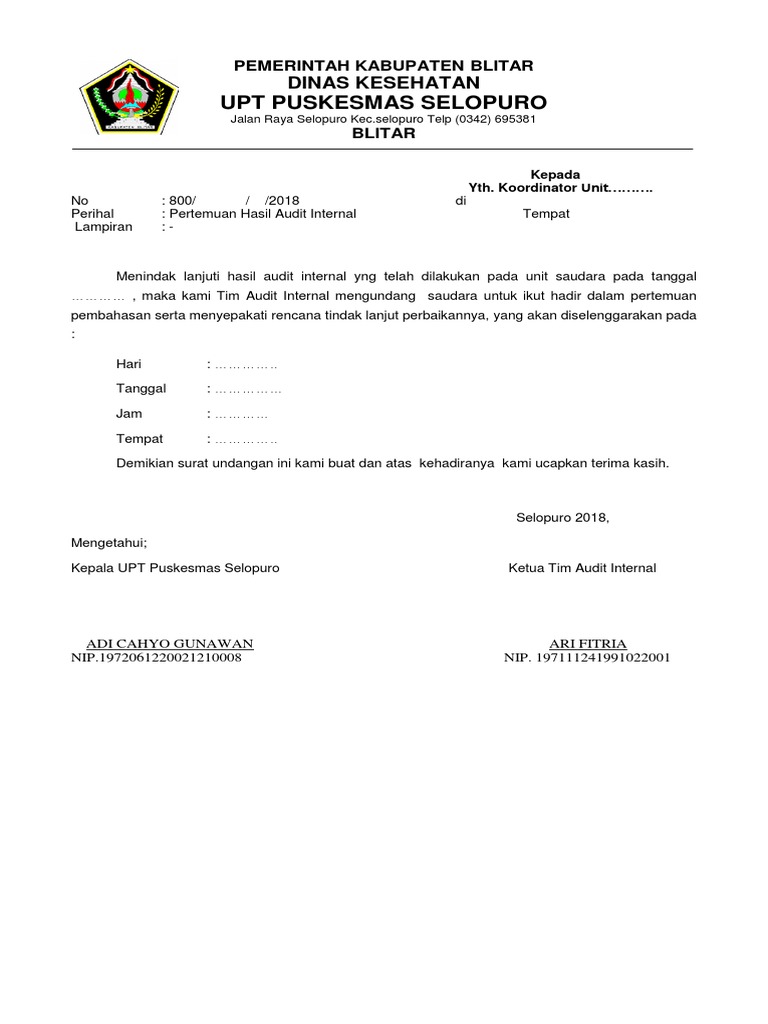 Download Contoh Surat Undangan Rapat Bentuk Doc
