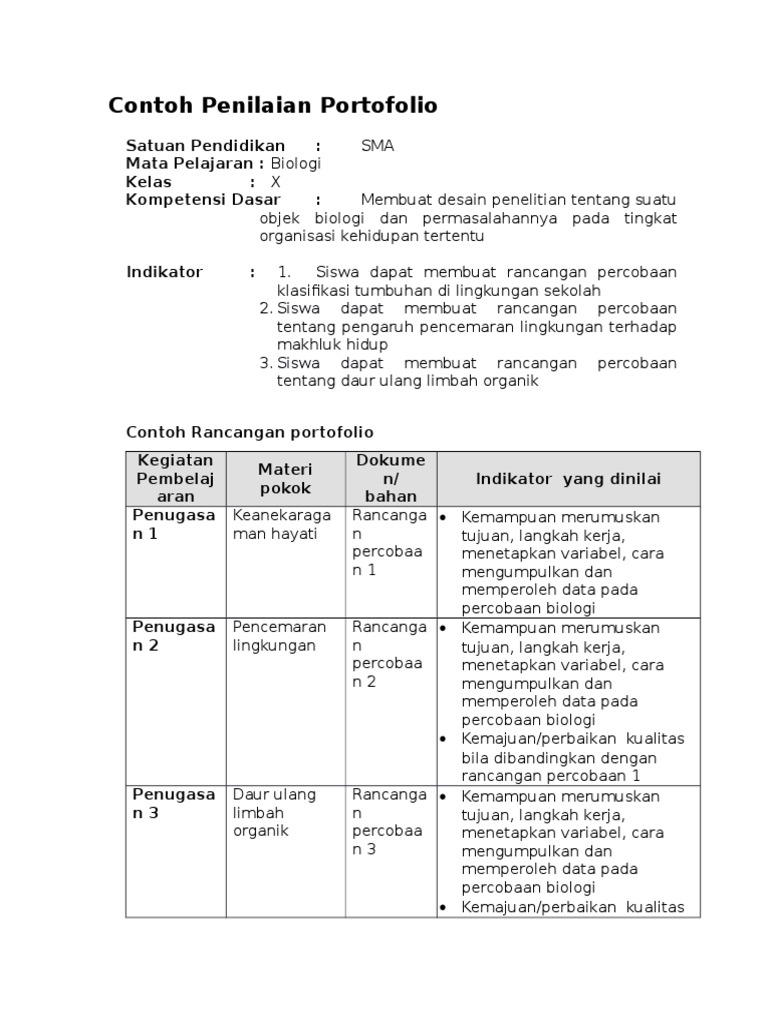 Contoh Penilaian Portofolio Bio Sma