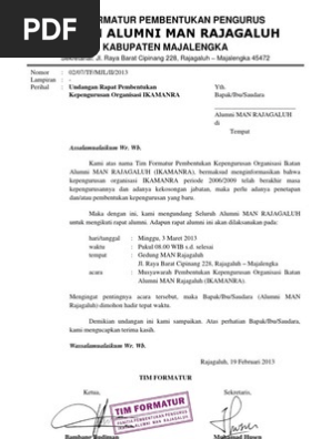 Contoh Surat Undangan Rapat Resmi Organisasi Contoh Surat